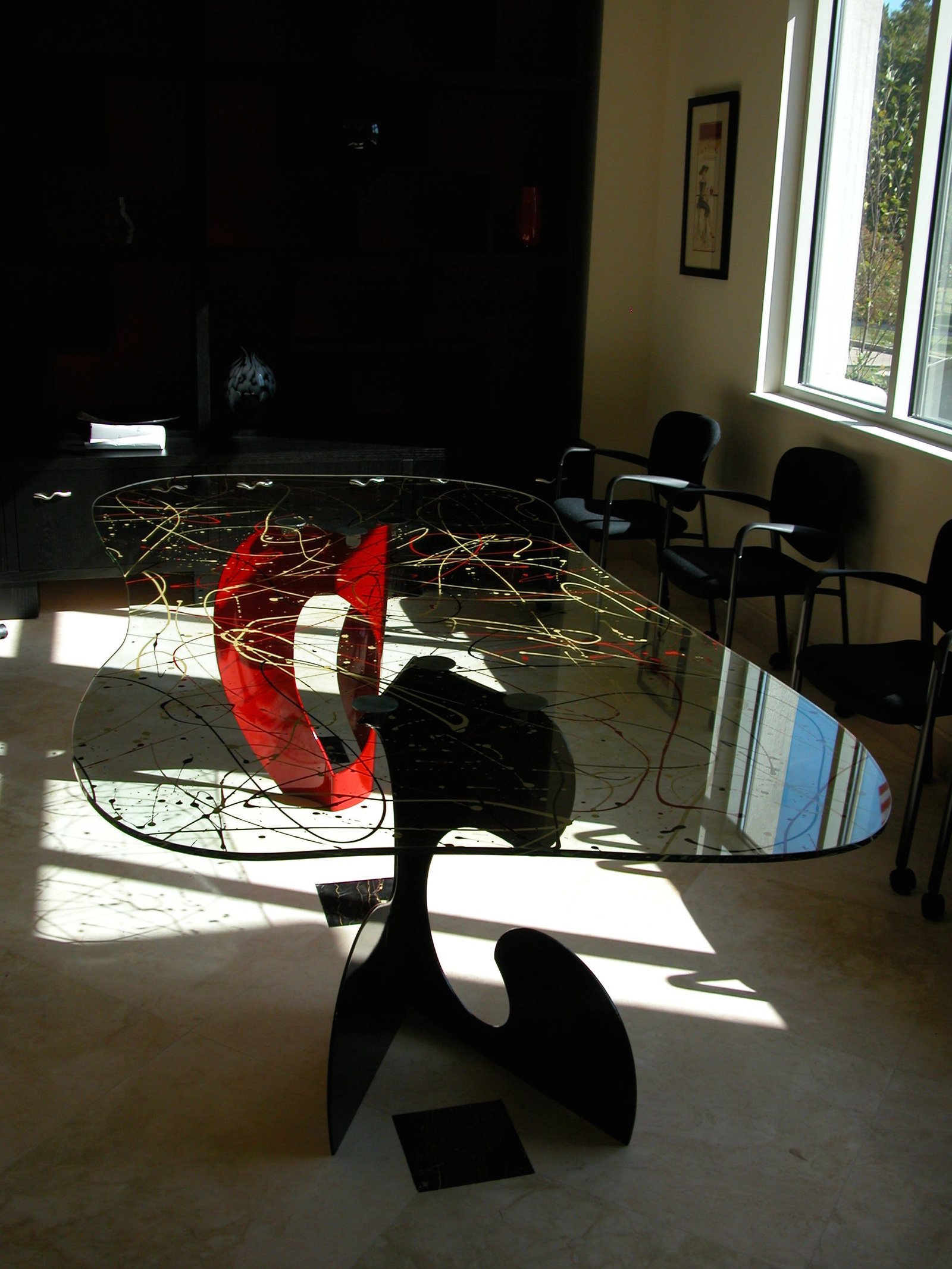 Within the overall project for Alltech’s North American Headquarters we were asked to design a series of tables for different areas and departments. Each of the tables was created in consideration of the department’s function. These tables are a small sampling of the wide variety of projects created for the headquarters building, all with the active involvement of Deirdre Lyons, co-founder of the company with her husband Pearce Lyons, from Ireland.